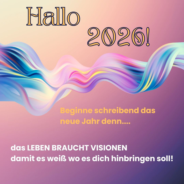 Jedes Jahr zum Jahresanfang werden unsäglich viele Vorsätze gemacht, aber dann passiert nichts mehr Warum? Weil die wenigsten Menschen ihre Ideen zu Ende denken. Aber das Leben braucht Visionen damit es weiß wo es dich hinbringen soll. In diesem Schreibraum bringen wir alles aufs Papier: deine Wünsche, Pläne, Visionen, verrückten Ideen und die kleinen Funken, die du vielleicht noch nicht ausgesprochen hast. Wir entdecken spielerisch, was 2026 für dich bedeuten darf, und schreiben Texte, die Mut machen, Freude schenken und Lust auf den Start zu neuen Ufern wecken. Du bekommst klare, kreative Impulse, leicht umzusetzen und voller Zauber, die dir helfen, deine Gedanken zu sortieren und dein inneres Bild für 2026 zu gestalten. „Hallo 2026“ ist dein sanfter, inspirierender Start ins neue Jahr. Ein Raum zum Durchatmen, Nachdenken, Ideen reifen zu lassen und Loszulegen ganz gemütlich von zuhause aus.